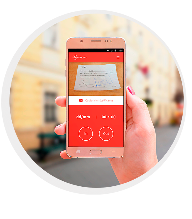 iAccesos ofrece la opción de registrar incidencias relativas a las entradas y salidas, acompañando éstos de los documentos justificantes (baja médica, justificante avería transportes públicos,...)